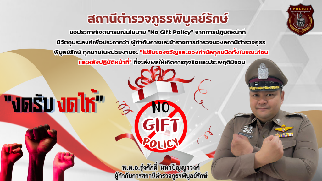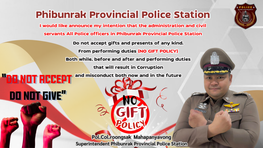 ประกาศสถานีตํารวจภูธรพิบูลย์รักษ์ เรื่อง นโยบายต่อต้านการรับสินบน (Anti-Bribery Policy)